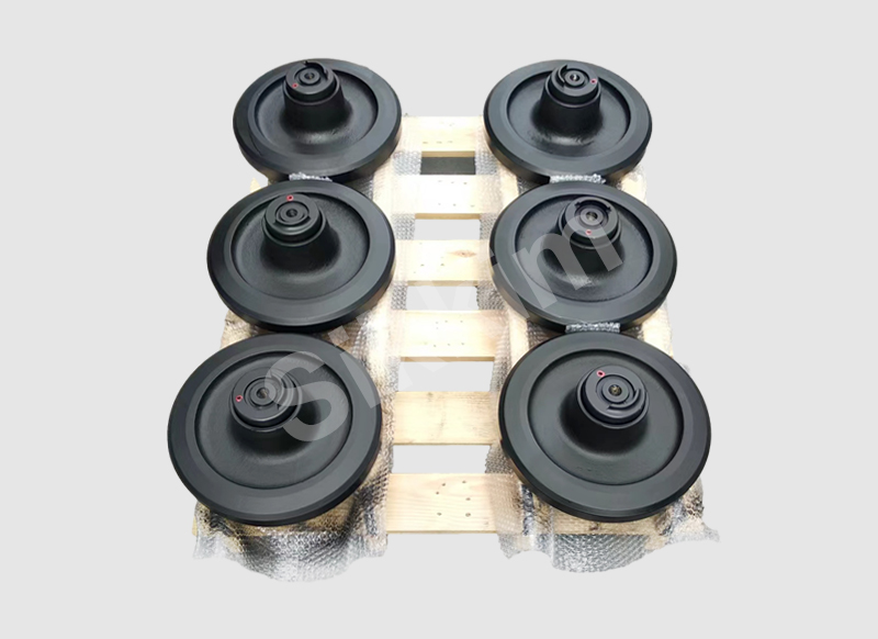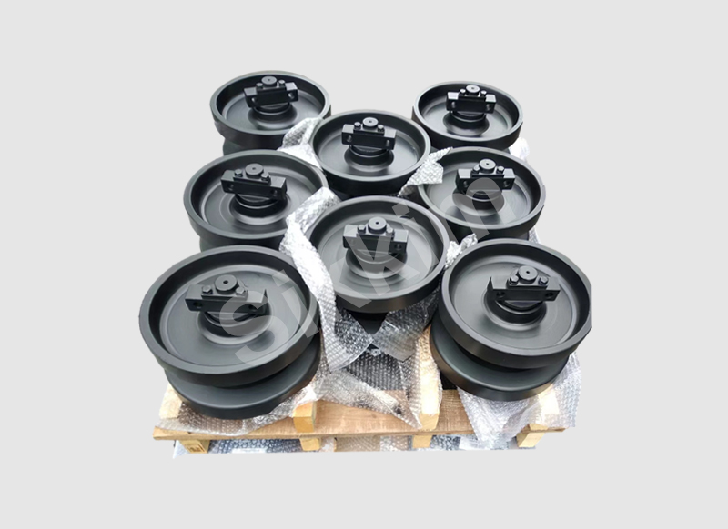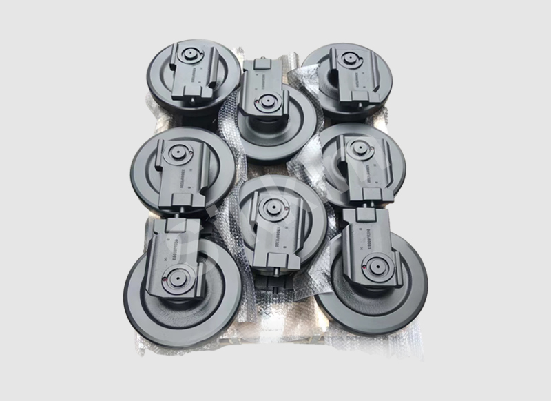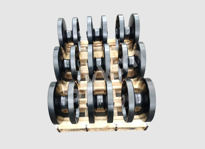 支重轮用于支承设备并分散履带上的机械重量,起到限制履带,防止横向滑脱的作用。当设备转向时,支重轮迫使履带在地面上滑移。