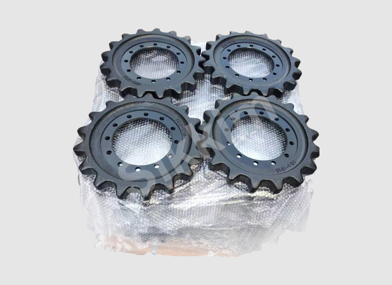 驱动轮和行走马达将发动机动力传给履带,要求驱动轮与履带的轨链啮合正确,传动平稳,并且当履带因销套磨损而伸长时仍能很好地啮合。
